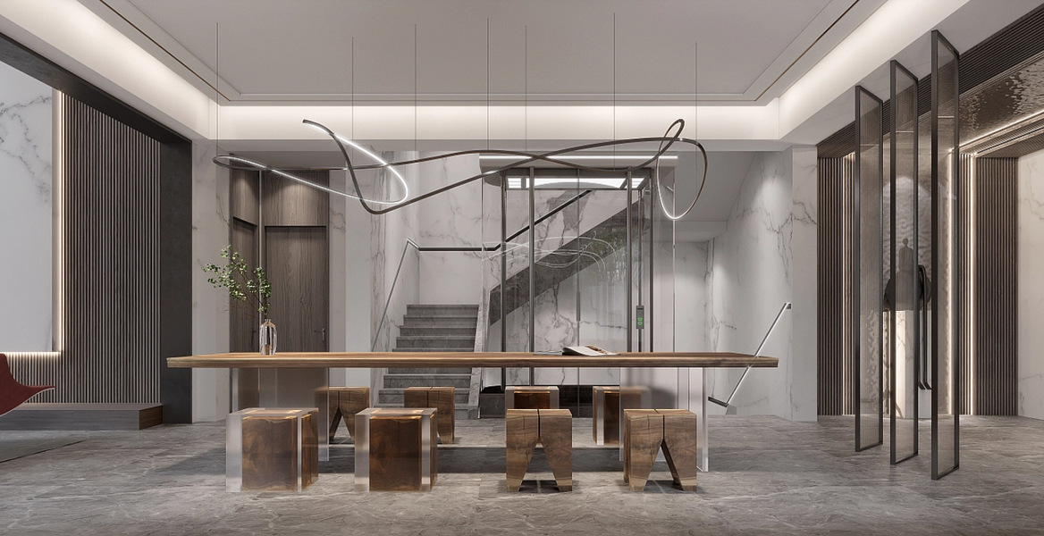 近期渲染现代别墅大堂
