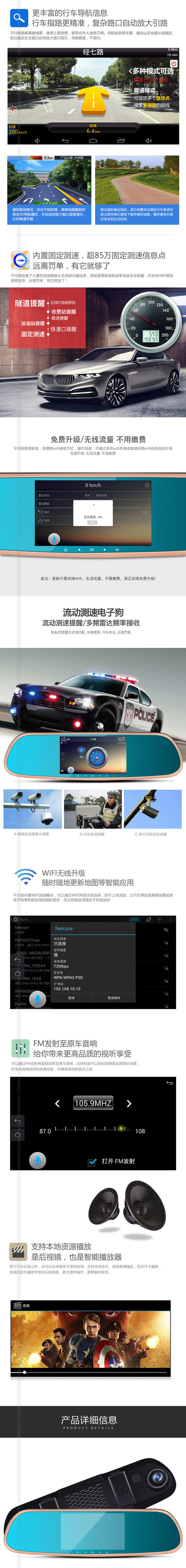 安卓智能行车记录仪 车品 智能后视镜 淘宝天猫详情页