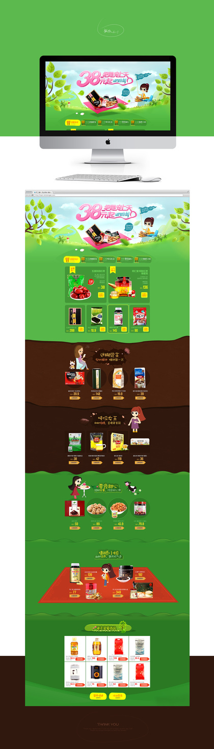 淘宝天猫高端首页食品零食时尚绿色网店装修