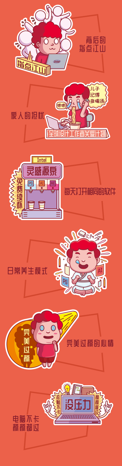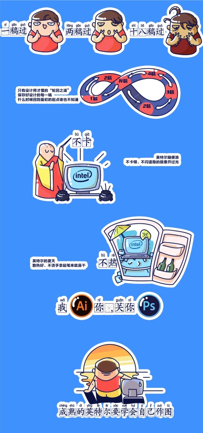 英特尔创意设计PC贴纸设计——设计师的日常