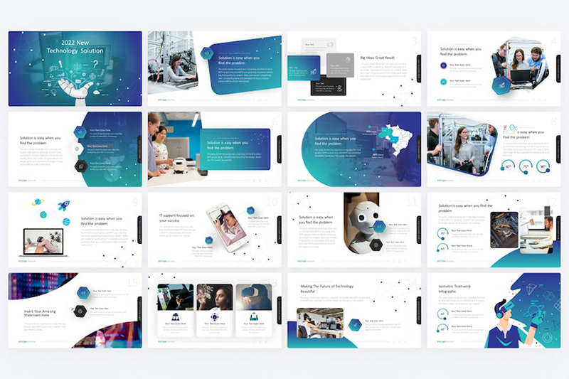 43页蓝色科技风虚拟世界VR项目介绍国外PPT模板