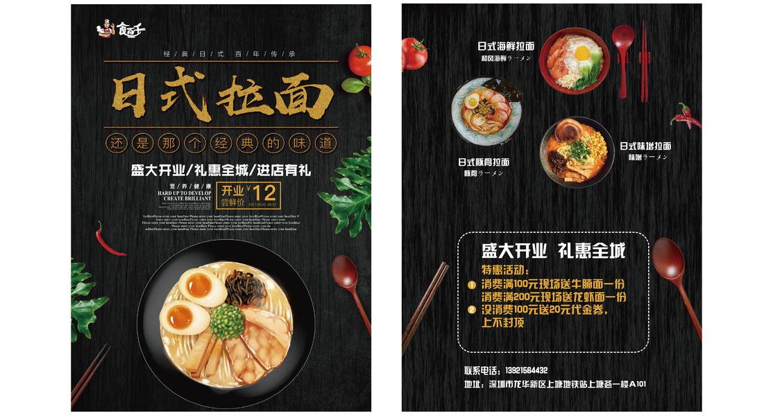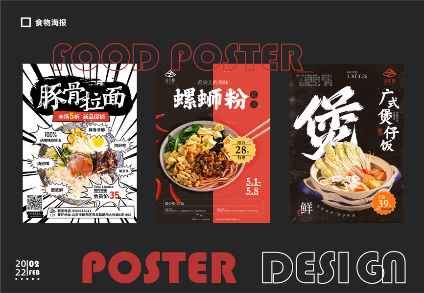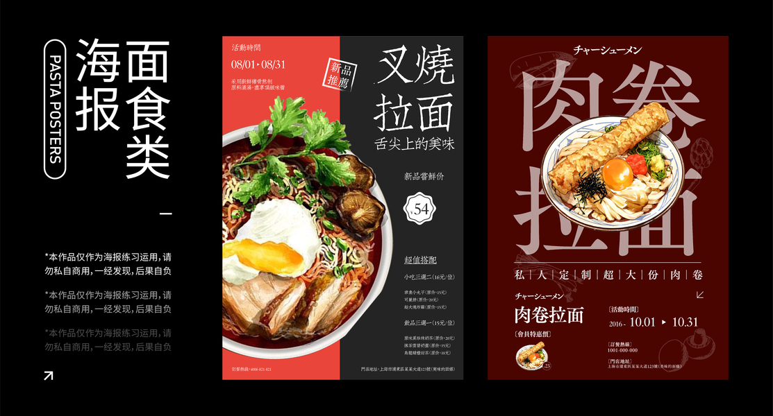 漫画感餐饮系列海报--特色面条系列