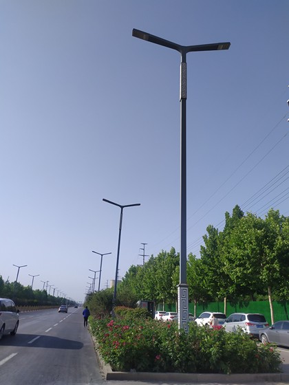简单大气双臂路灯-特色双臂回纹路灯-世博光电
