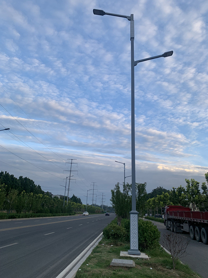 回纹双臂路灯批发-12米回纹路灯杆-特色喷绘双臂路灯杆