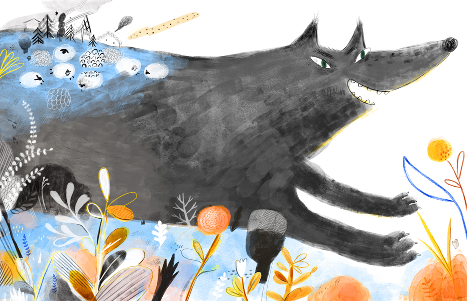 大笨狼 水彩风格 商业插画 儿童插画 动物拟人卡通绘本