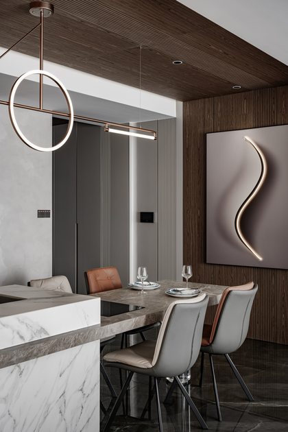 150㎡现代都市简约风格大户型装修,大地色系温暖美宅