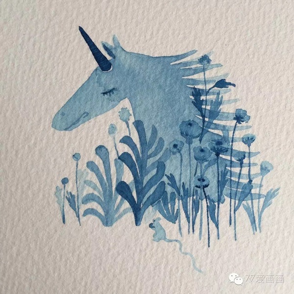 蓝色系水彩小插画