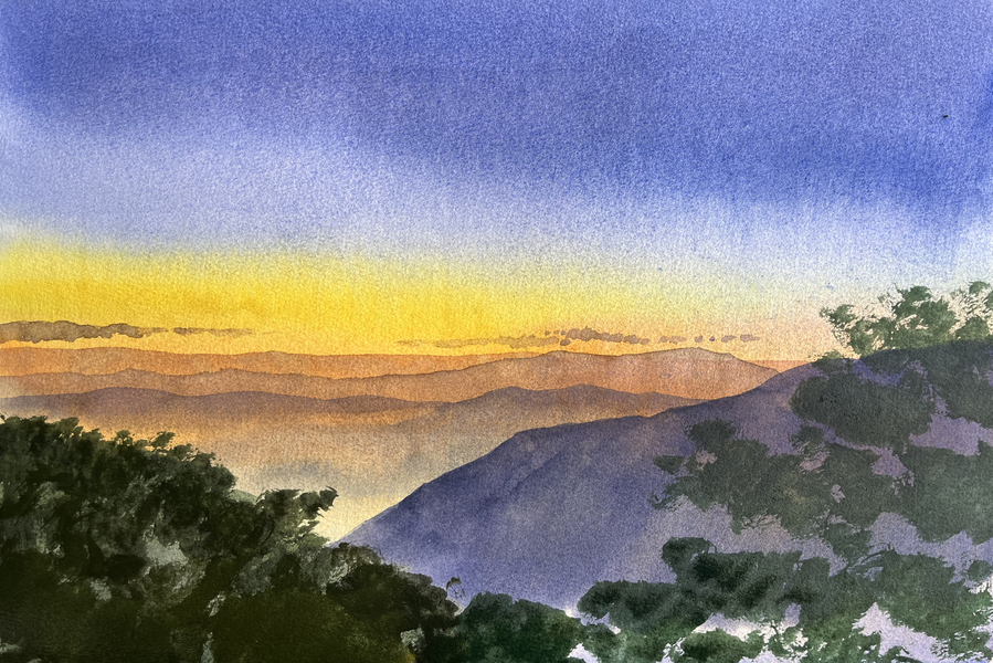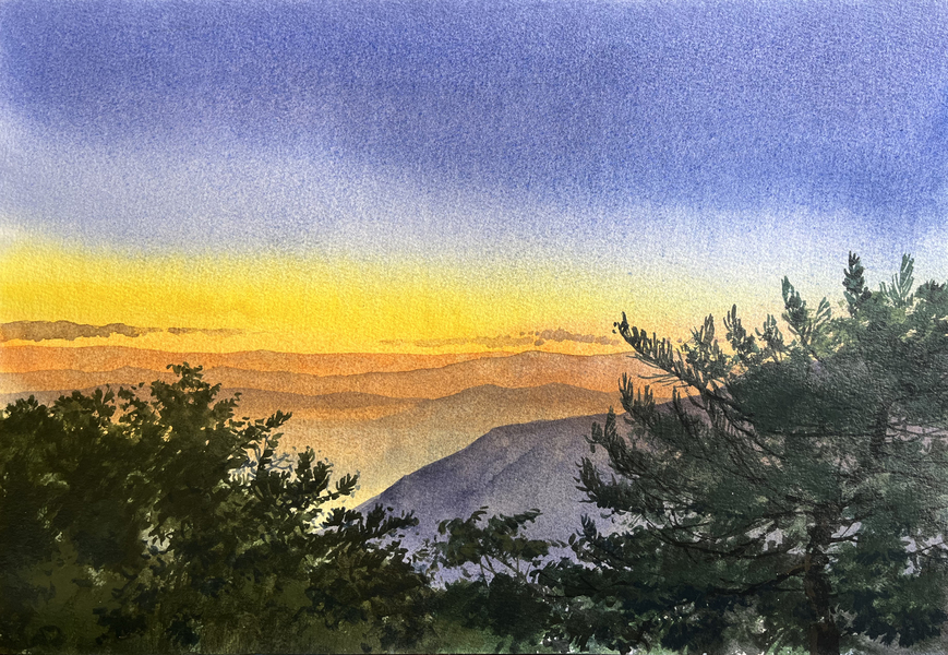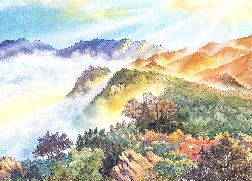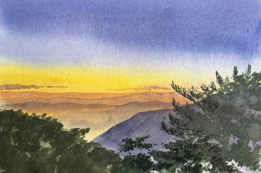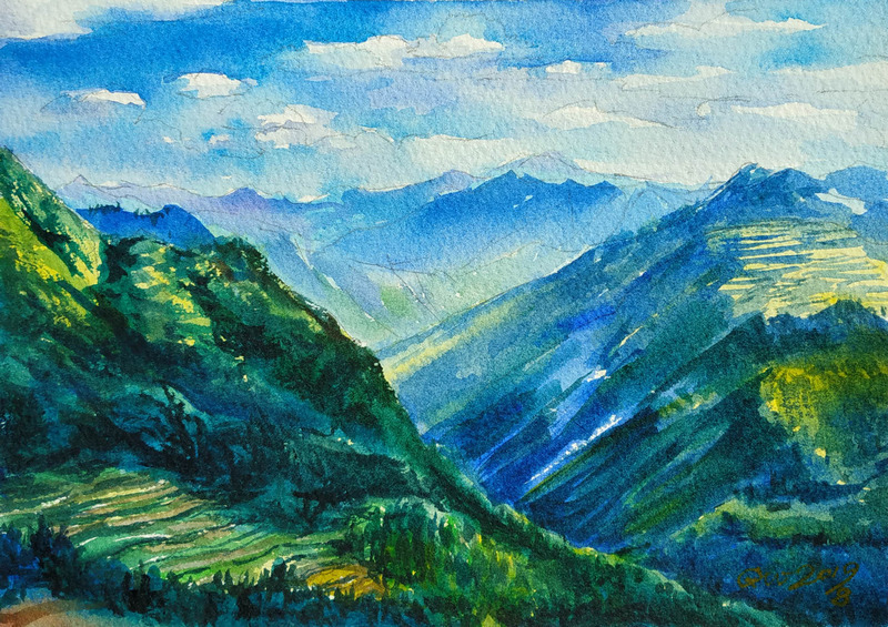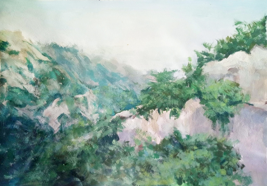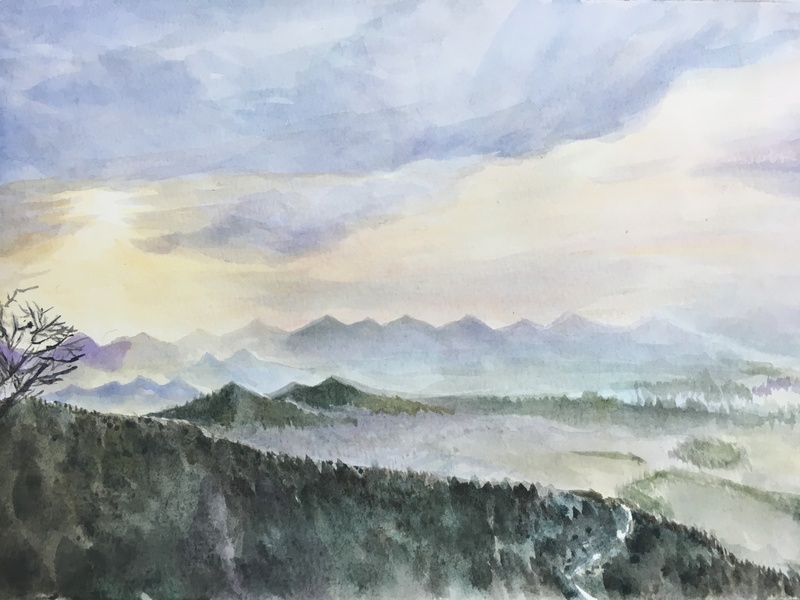 水彩风景练习,4月3日在百望山上用手机拍的北京一角
