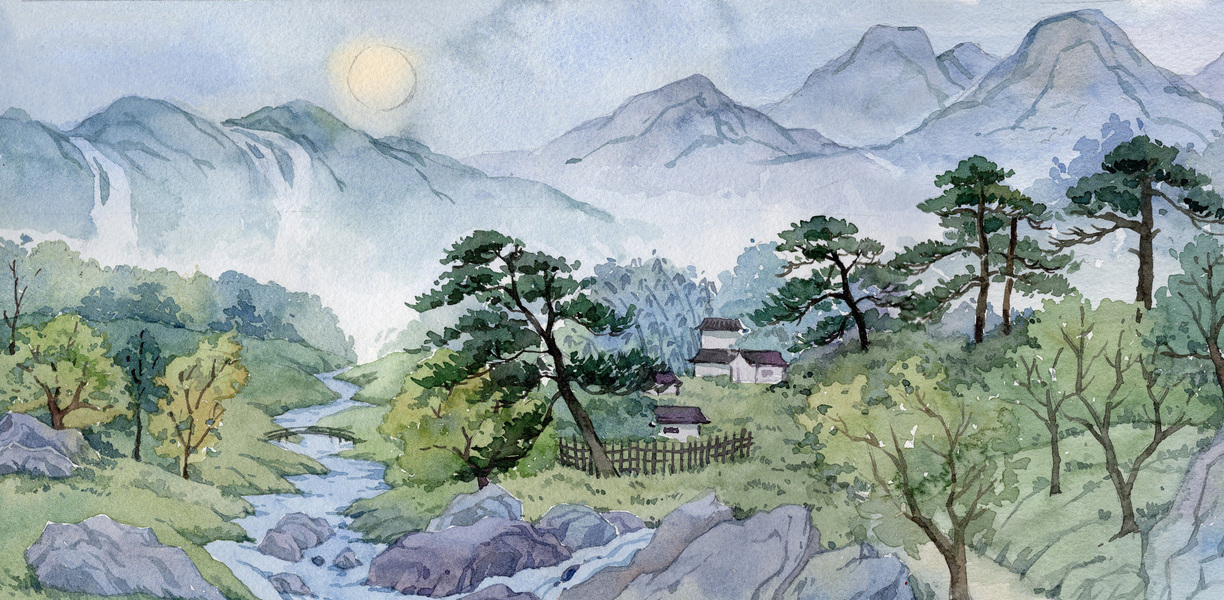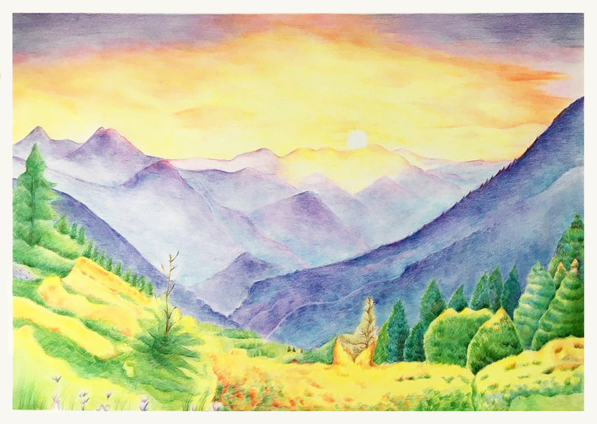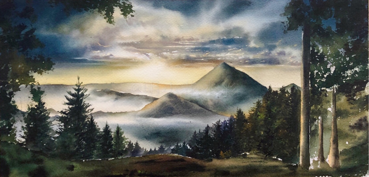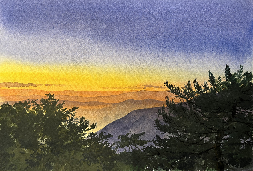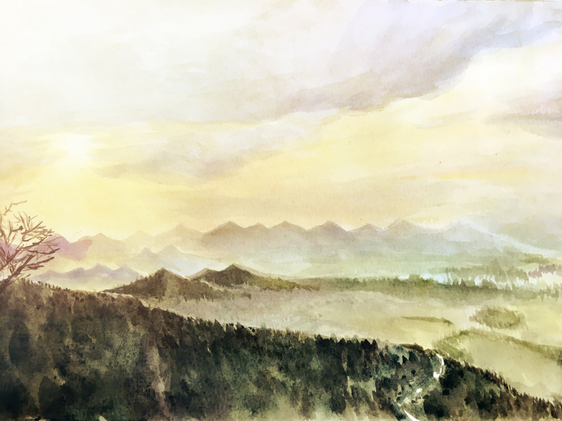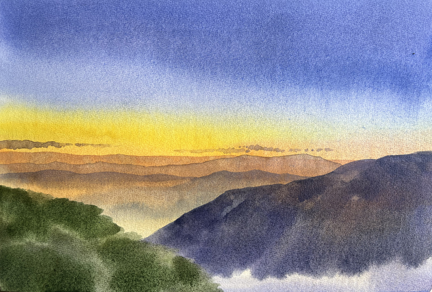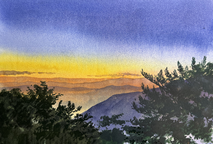 水彩风景练习,4月3日在百望山上用手机拍的北京一角