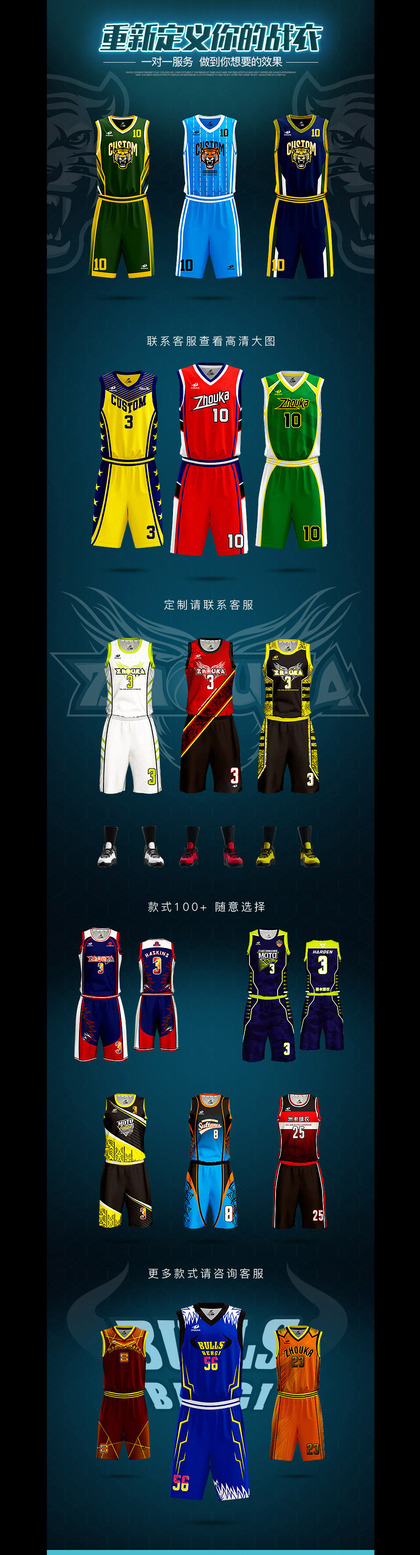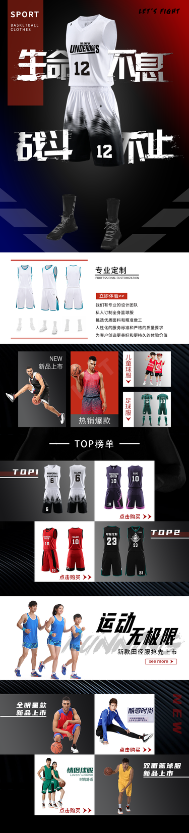 淘宝天猫 服饰类目 篮球服详情页 宝贝描述页面 海报设计 首页装修