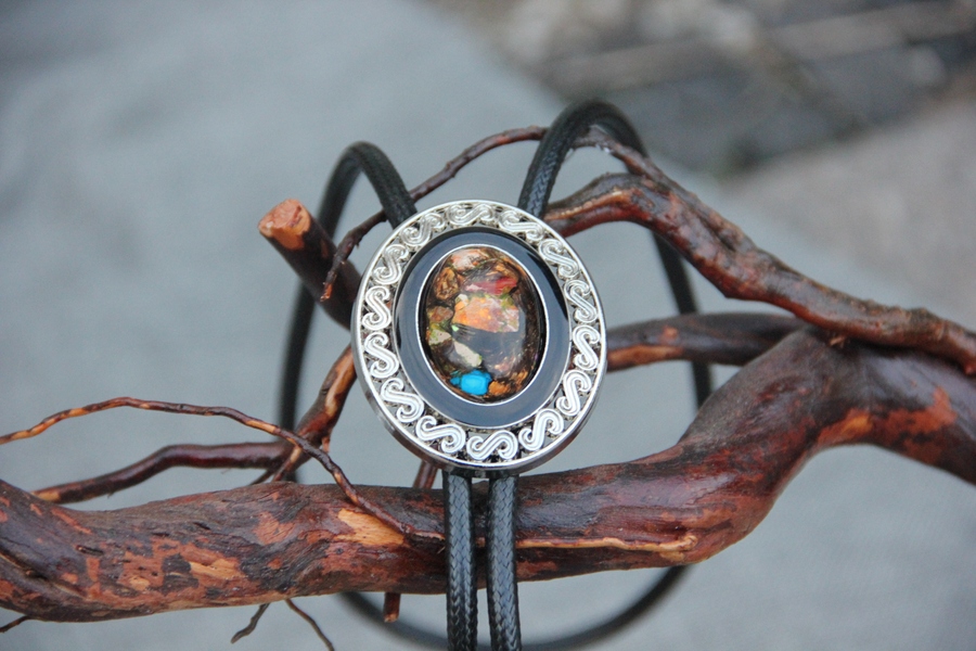 原创设计师金属底七彩帝皇石男女美式波洛领带bolo tie
