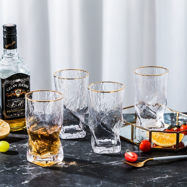 锤纹金边水杯