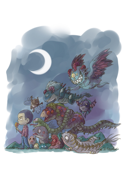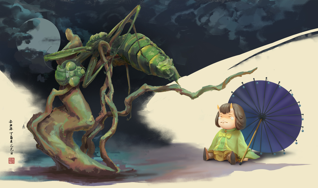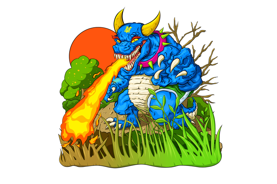 插画手绘卡通-农业农药水果蔬菜-草炸弹虫牛狙击手火箭