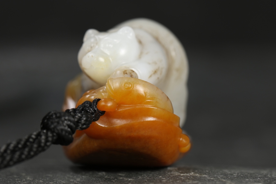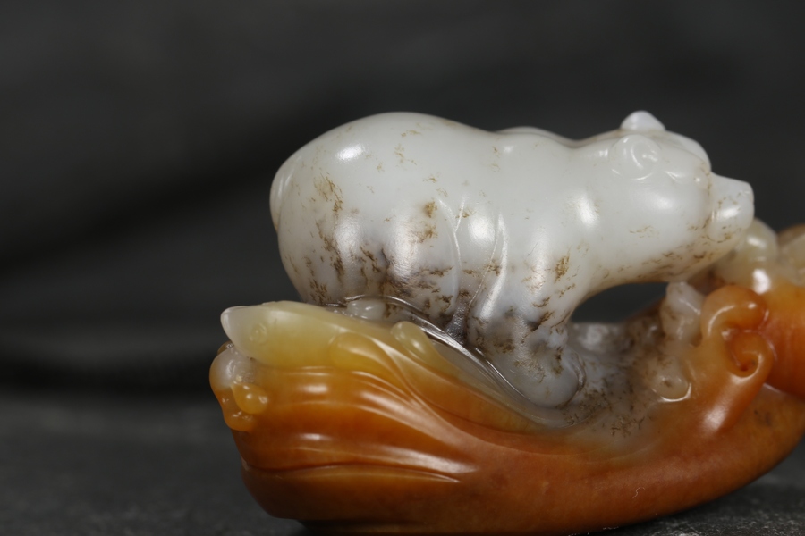 乌尔禾金丝玉辉煌料西域玉雕大师许像元作品灵猴献寿