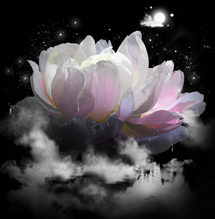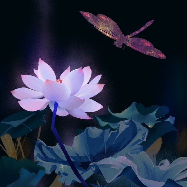 池塘荷花夜景