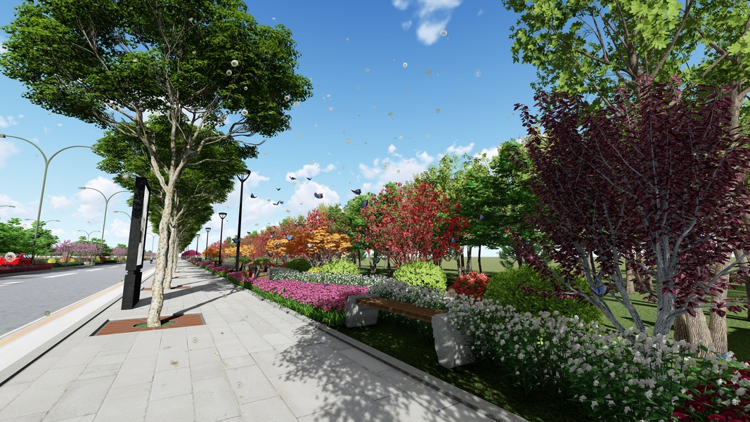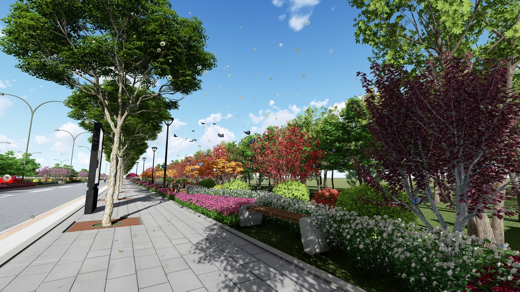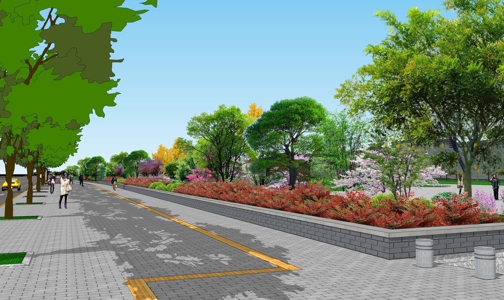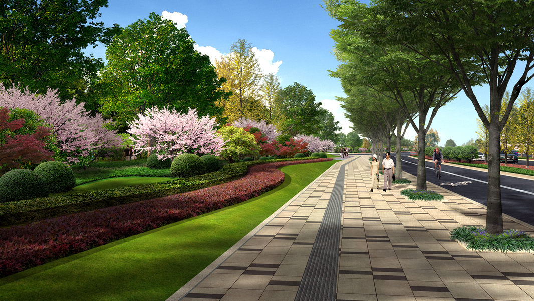 一些道路两侧绿化的效果图