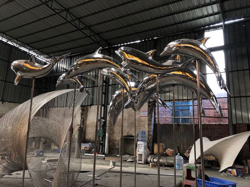不锈钢景观雕塑 海豚湾经典重塑