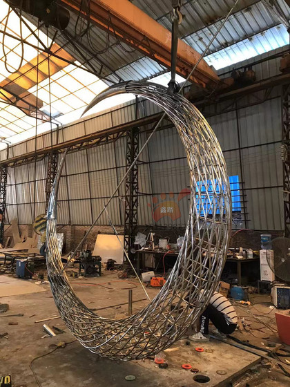 大型不锈钢编织月亮雕塑户外园景观