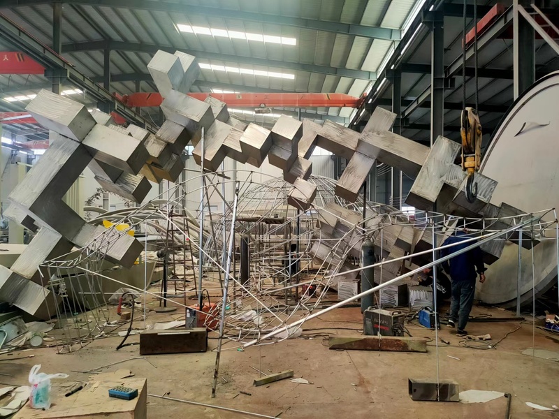 南昌-高端-小区-大门-水景-正方体-雕塑-制作过程展示
