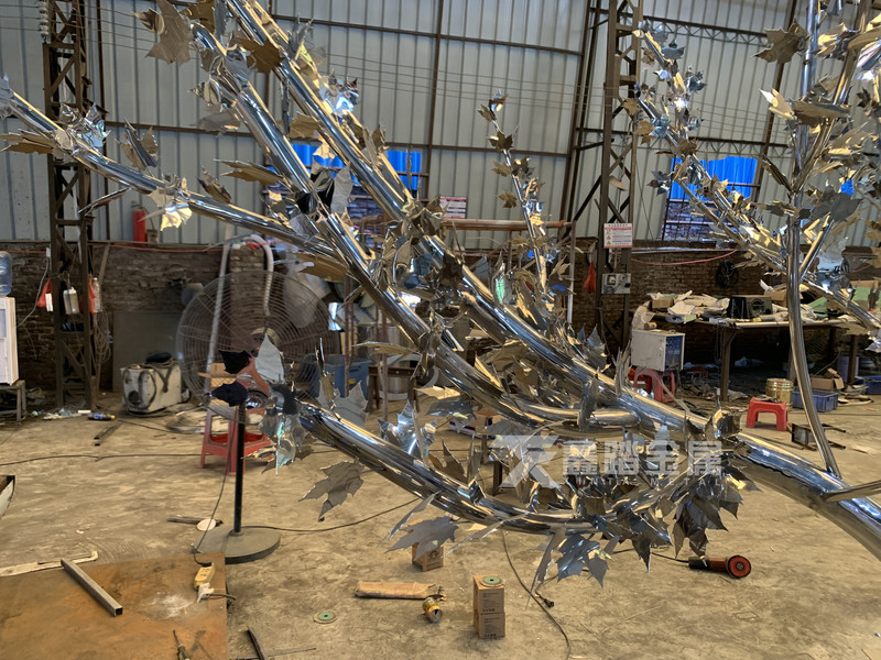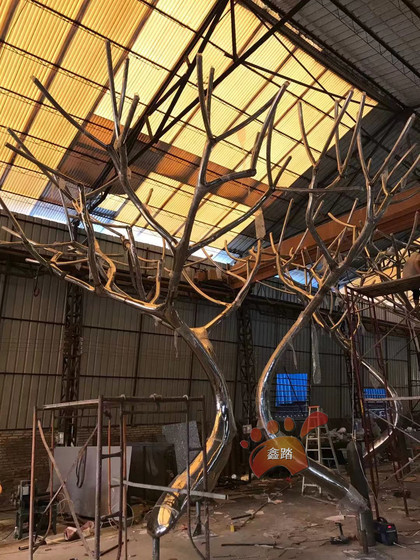 民间工艺镜面不锈钢树雕塑纯手工锻造