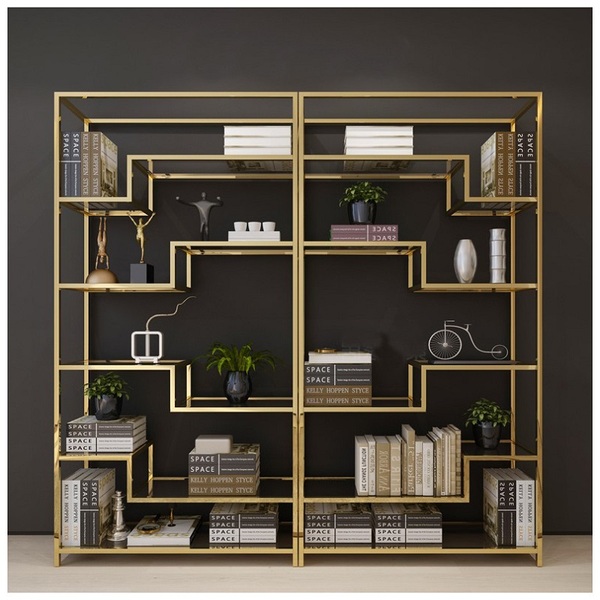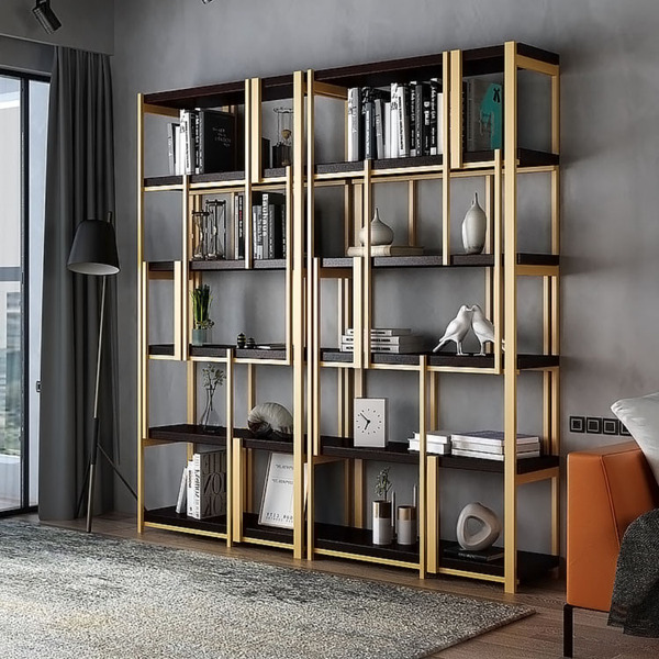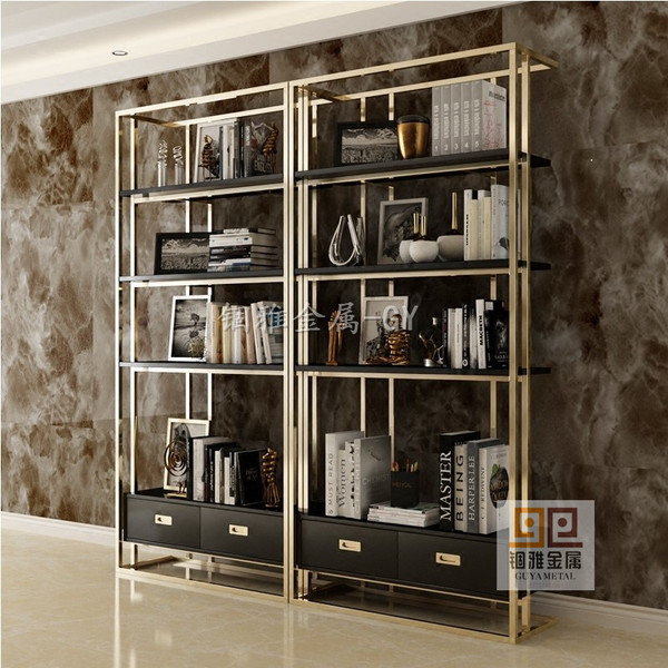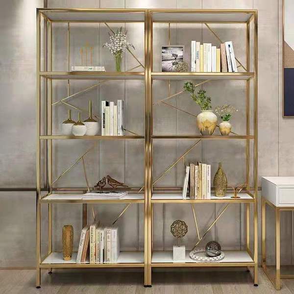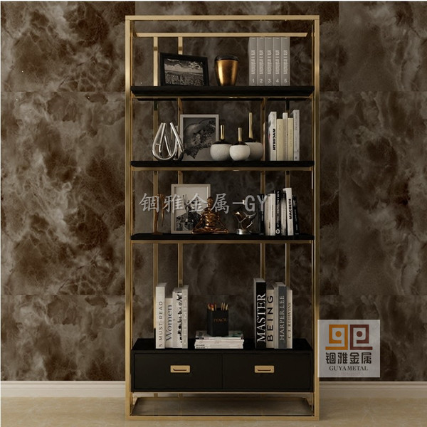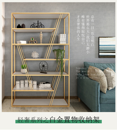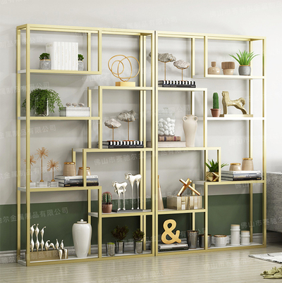 现代简约不锈钢置物架落地小户型客厅博古架拉丝黄钛金