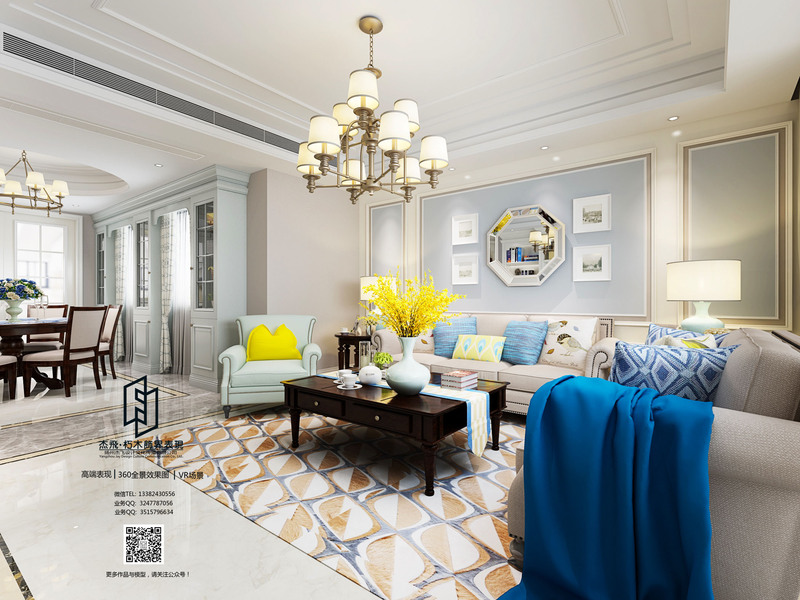 滕州原柳娜 | 滕州保利花园179平方美式风格效果图