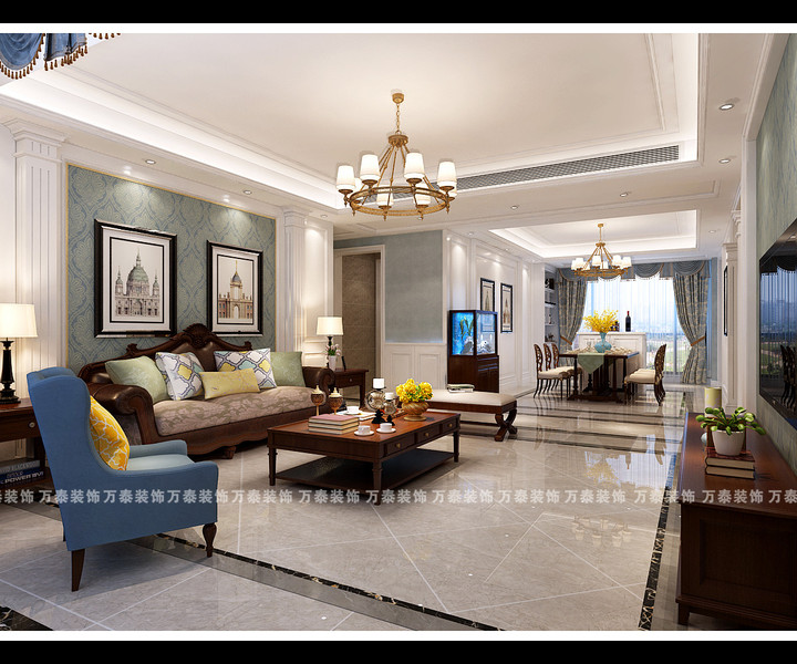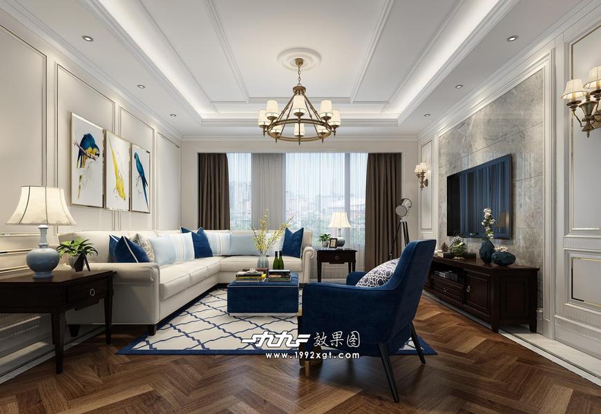 州君瑞城洋房美式风格装修效果图 简单大方又实用。