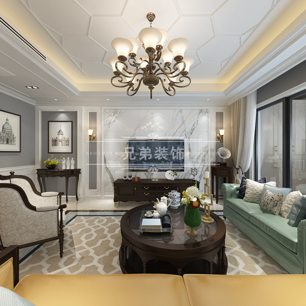 哈尔滨装修公司江南装饰做招商贝肯山美式风装修效果图
