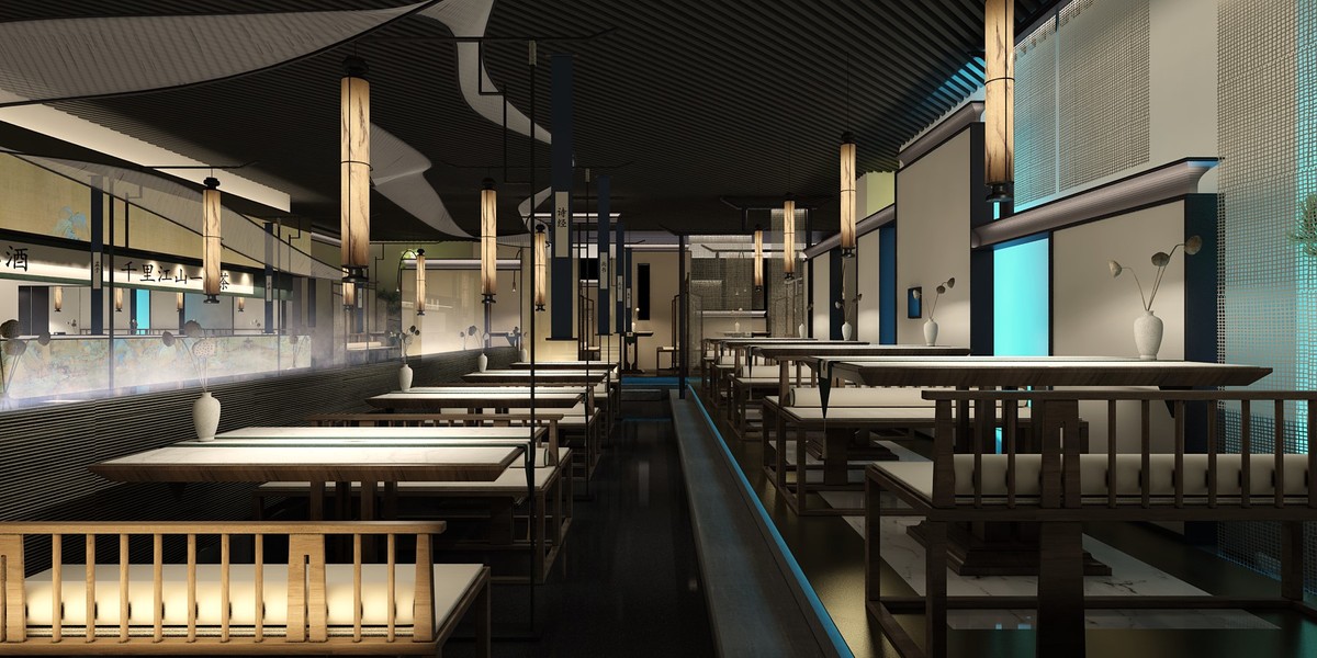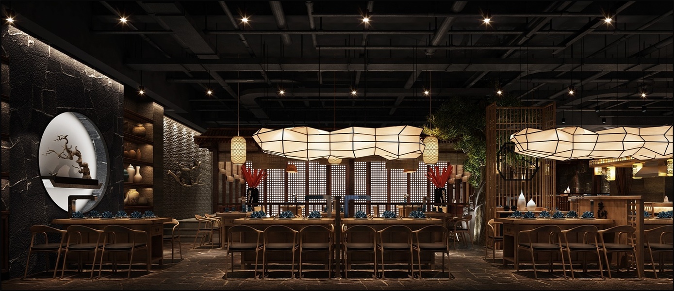 银川主题火锅店设计|现代新中式火锅店设计效果图