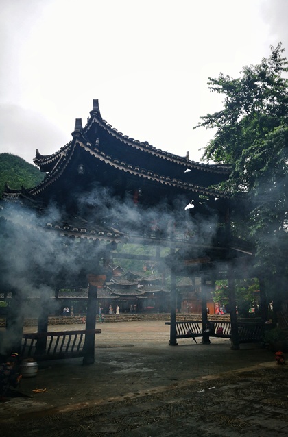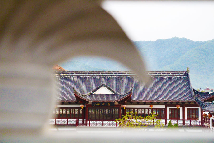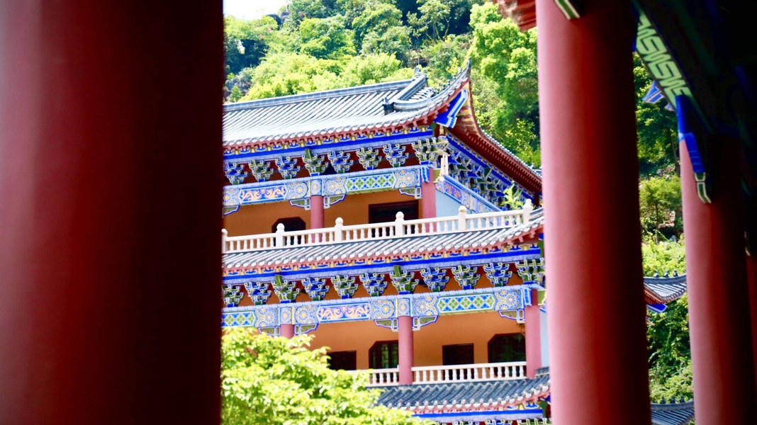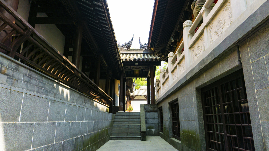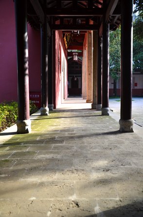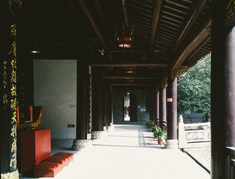 石柱后的青砖黛瓦