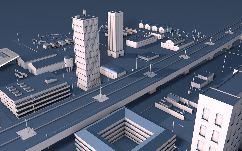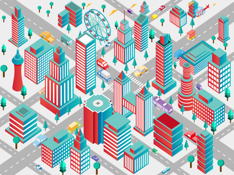 2.5D房子汽车马路红绿灯斑马线花园树路灯医院酒店商场