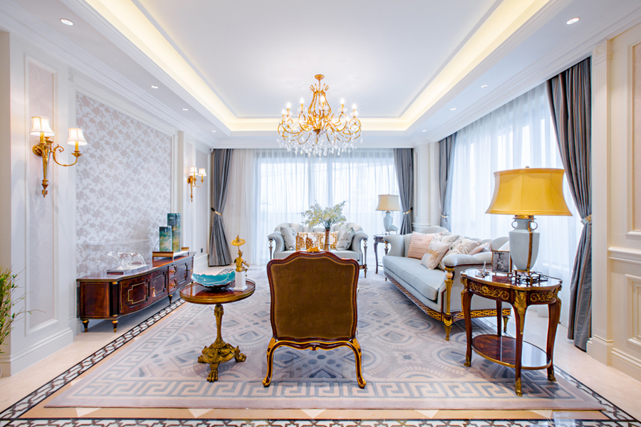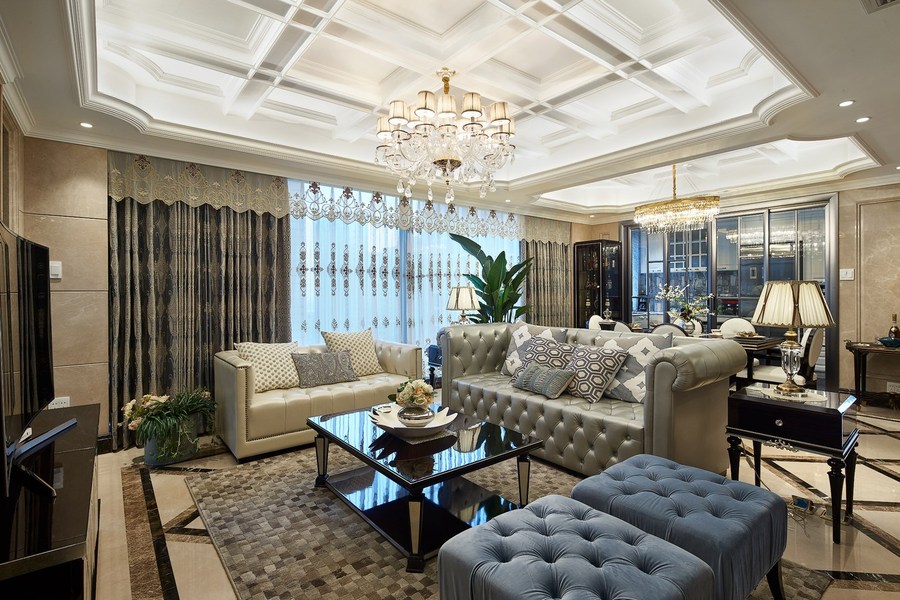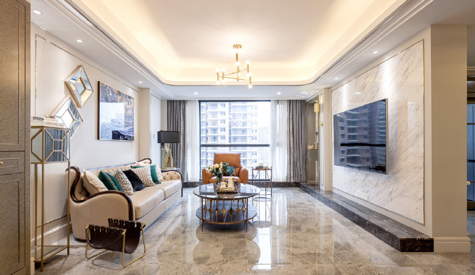 融创滨江壹号装修完工实景图,时尚美式轻奢风设计案例