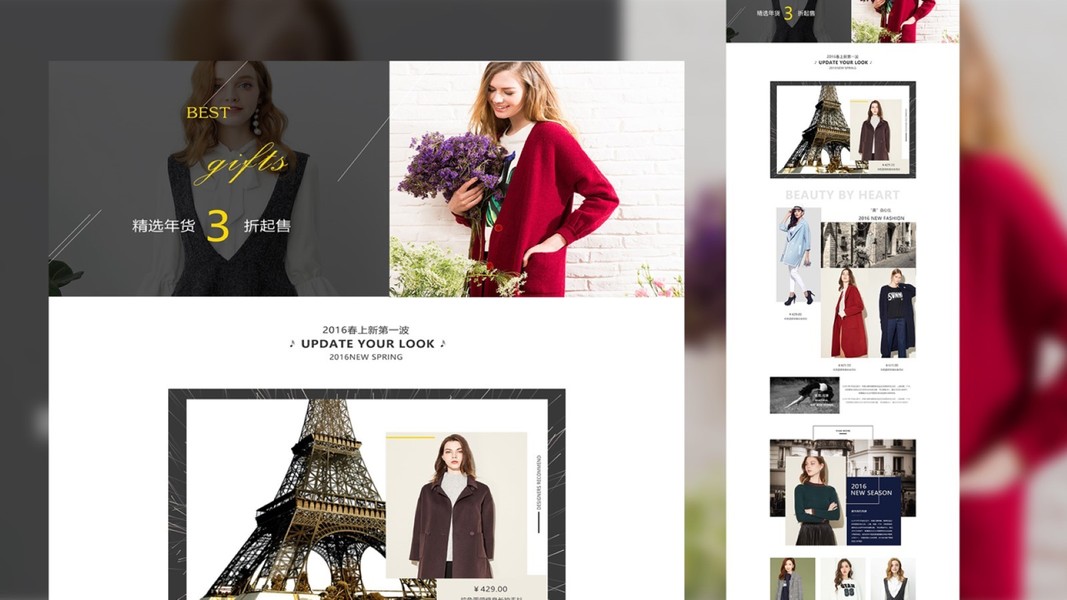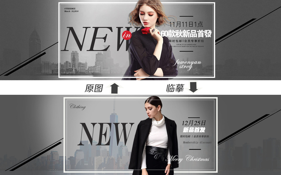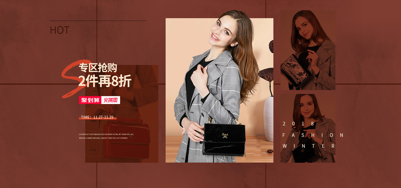 天猫淘宝阿里巴巴京东商城电子商务首页二级页秋冬大码女装绣花连衣裙上新海报