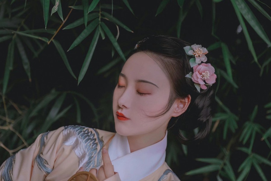 云一涡,玉一梭。淡淡衫儿薄薄罗,轻颦双黛螺。 ——