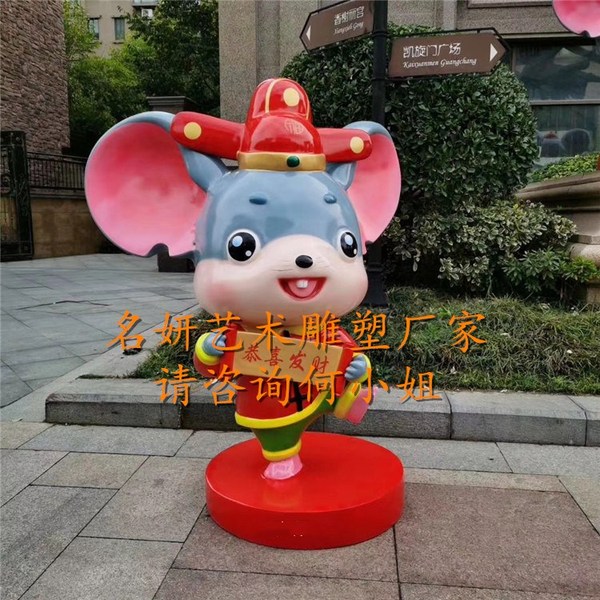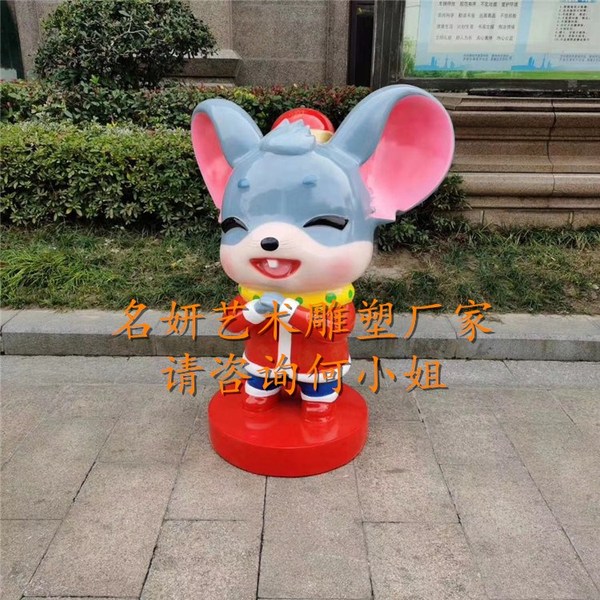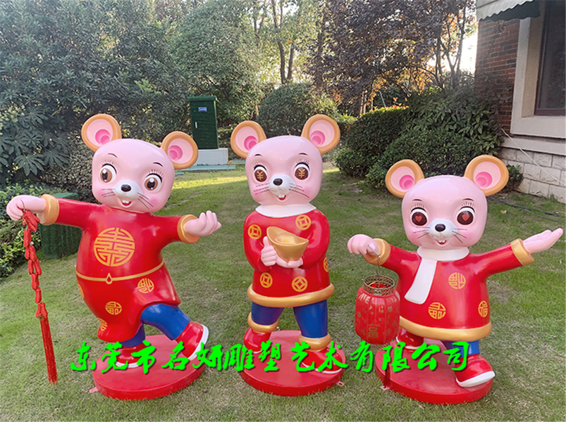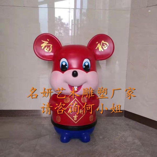 将横空出世玻璃钢万事如意卡通鼠雕塑形象来新年拜年