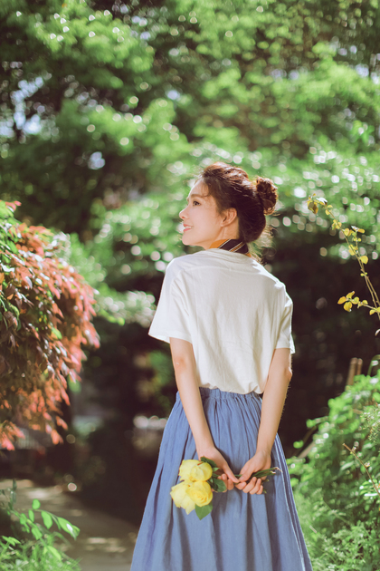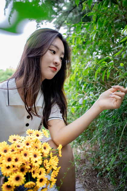 女人和花