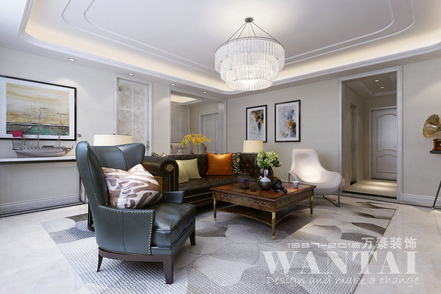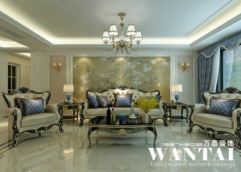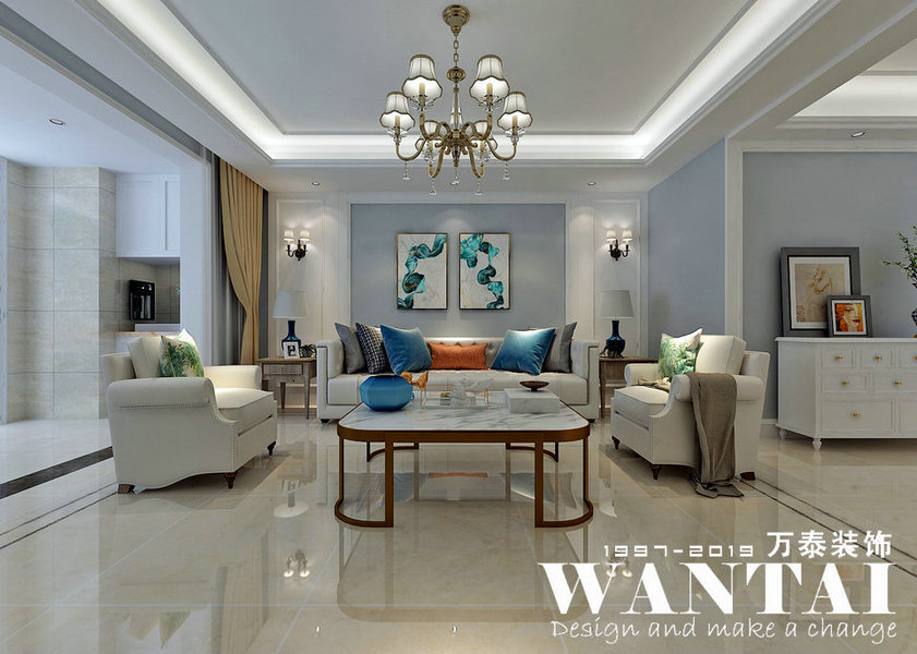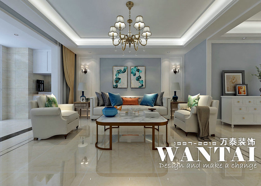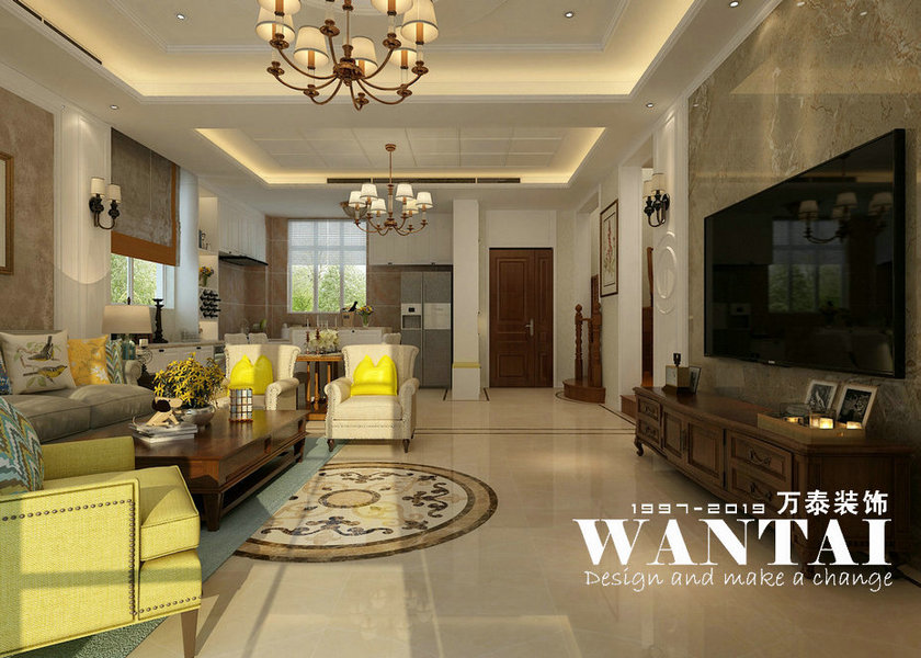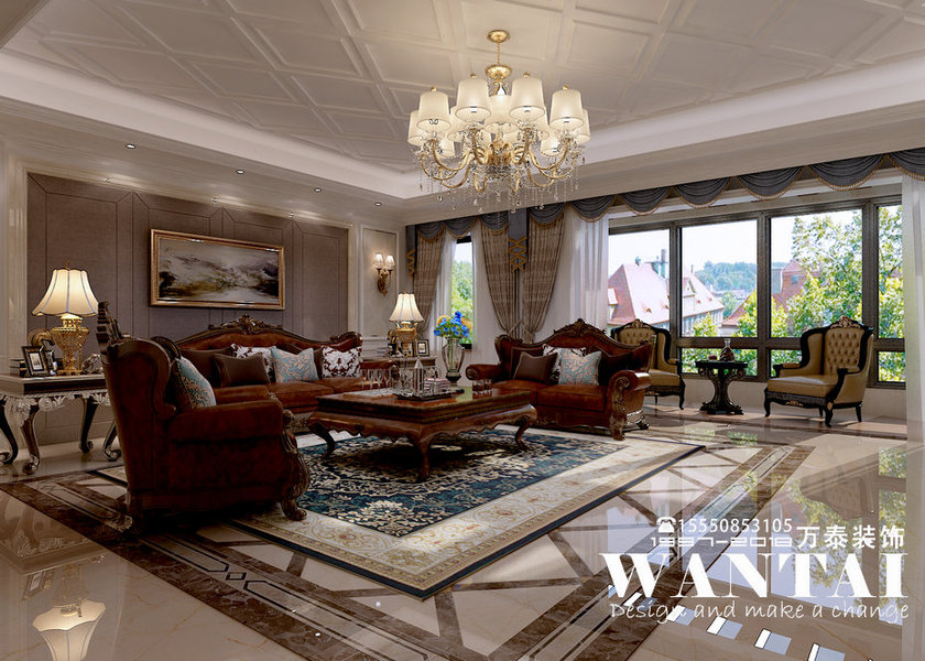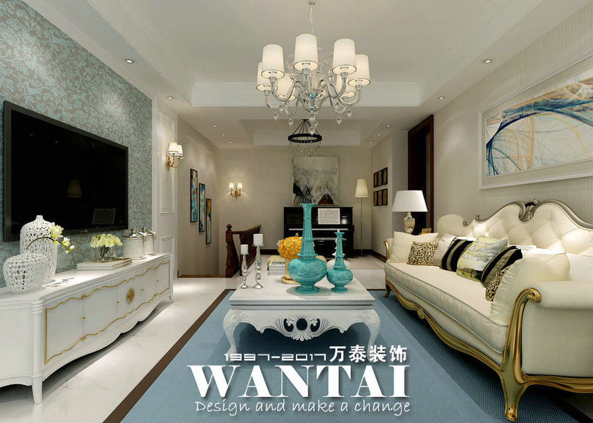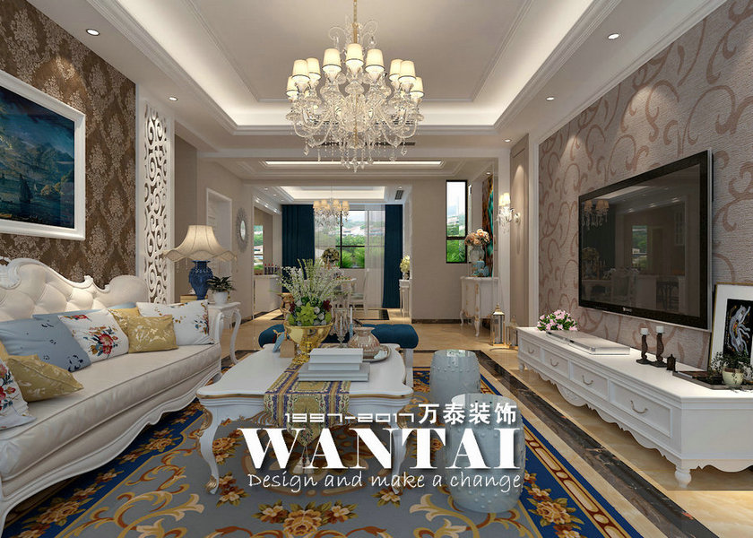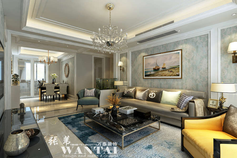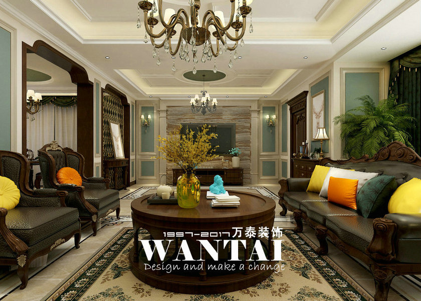 泰安装修|泰安绿地云水谣150平美式欧式混搭装修效果图