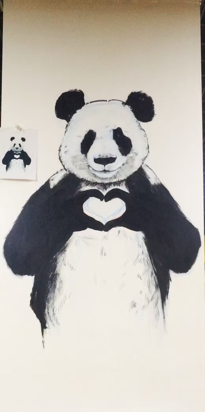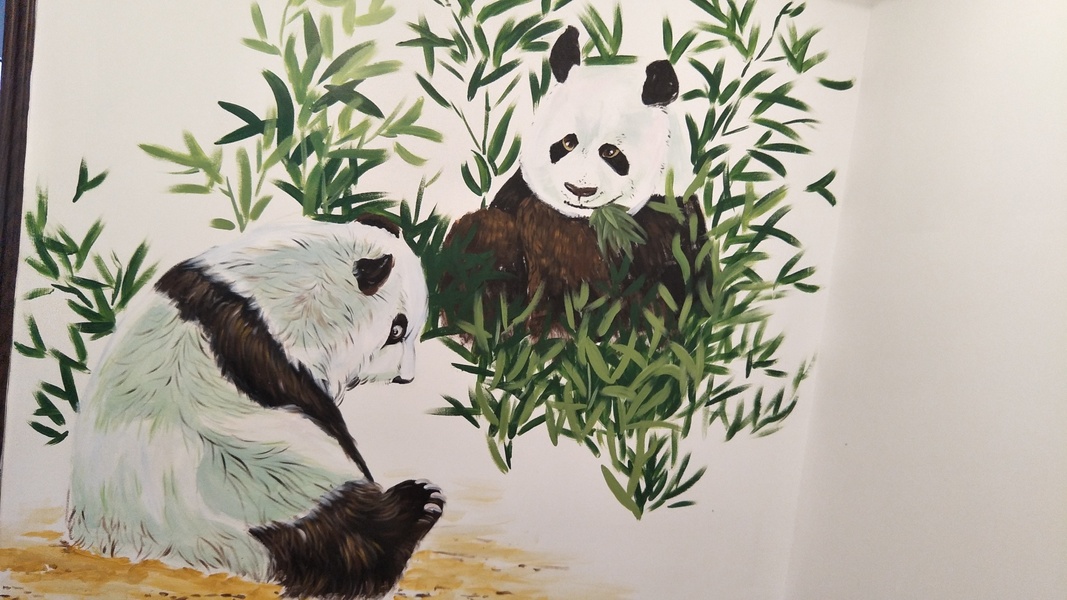 饭店的熊猫墙绘