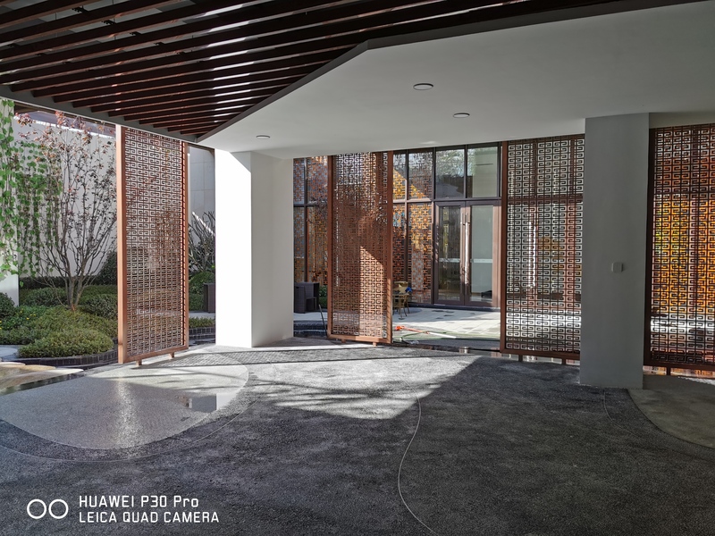 精致优雅的不锈钢拉丝仿古铜装饰花格屏风