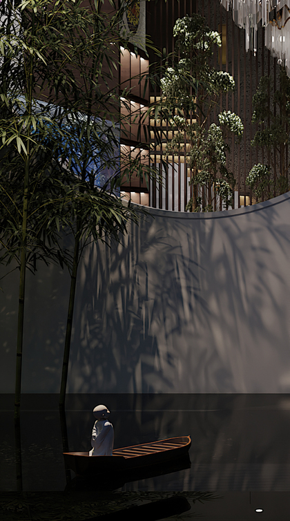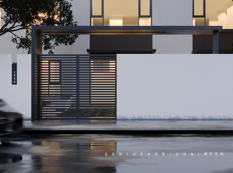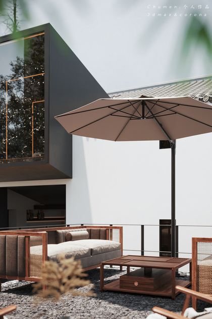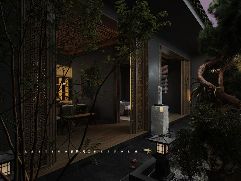 谦禾空间设计 隐山视觉 | 雨天庭院效果表现