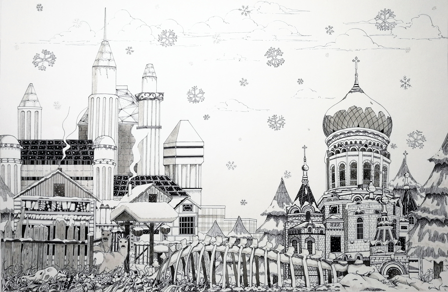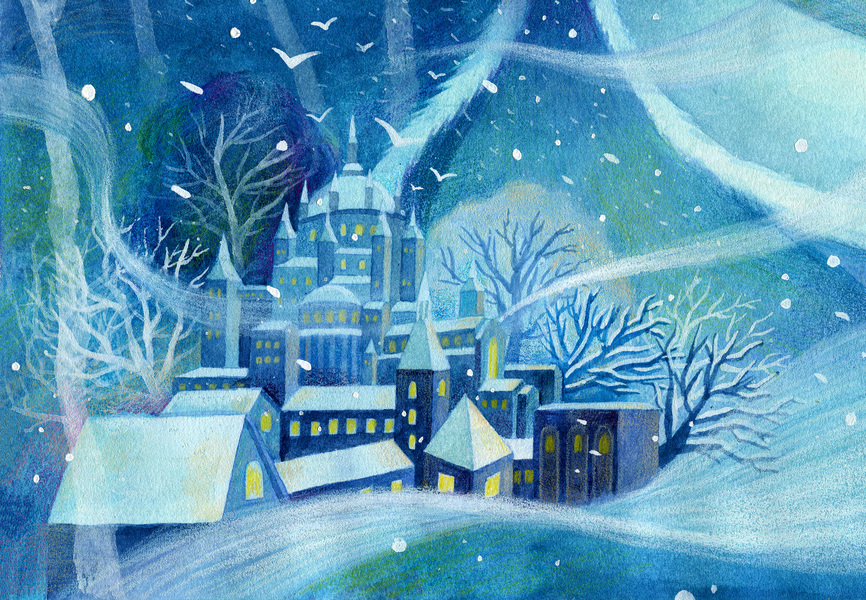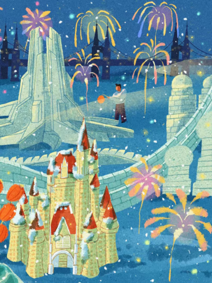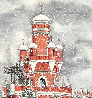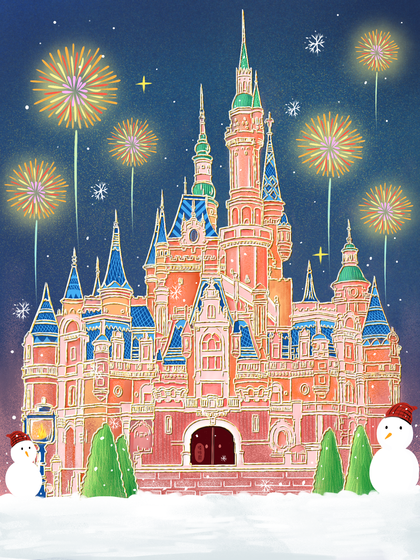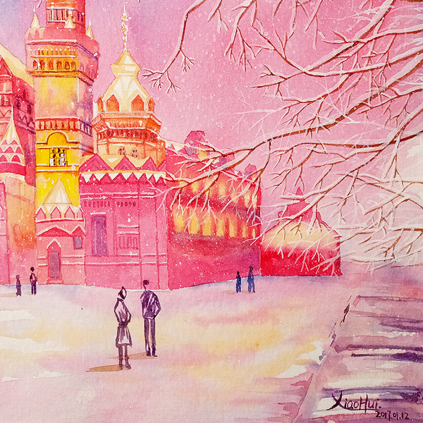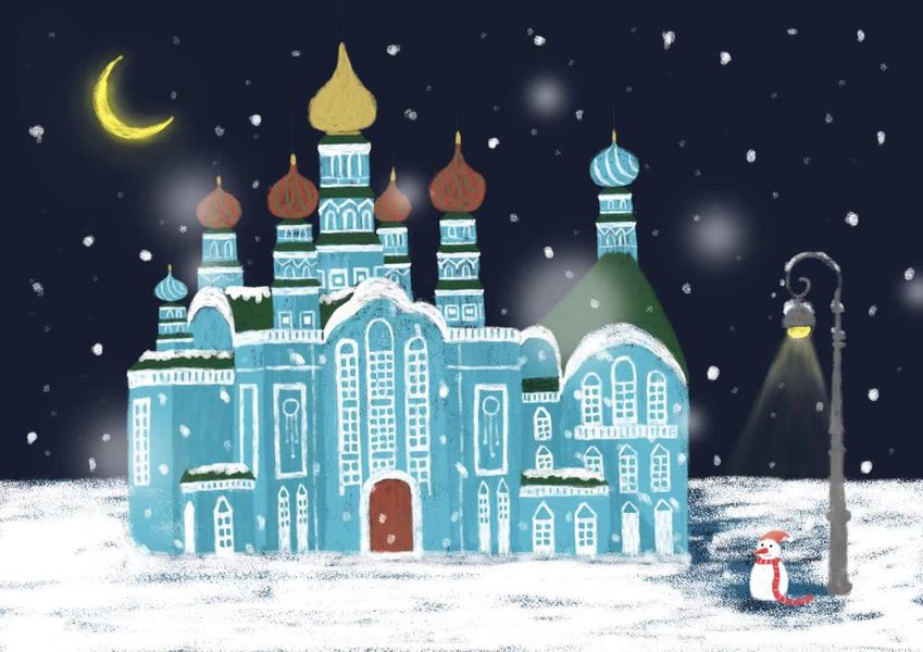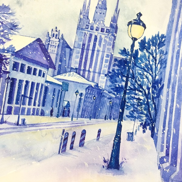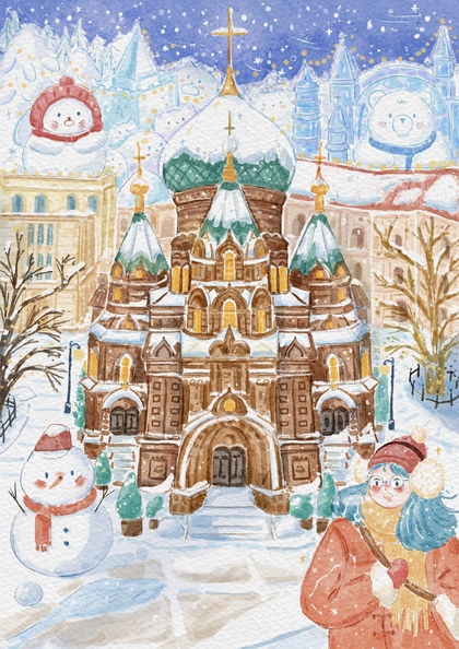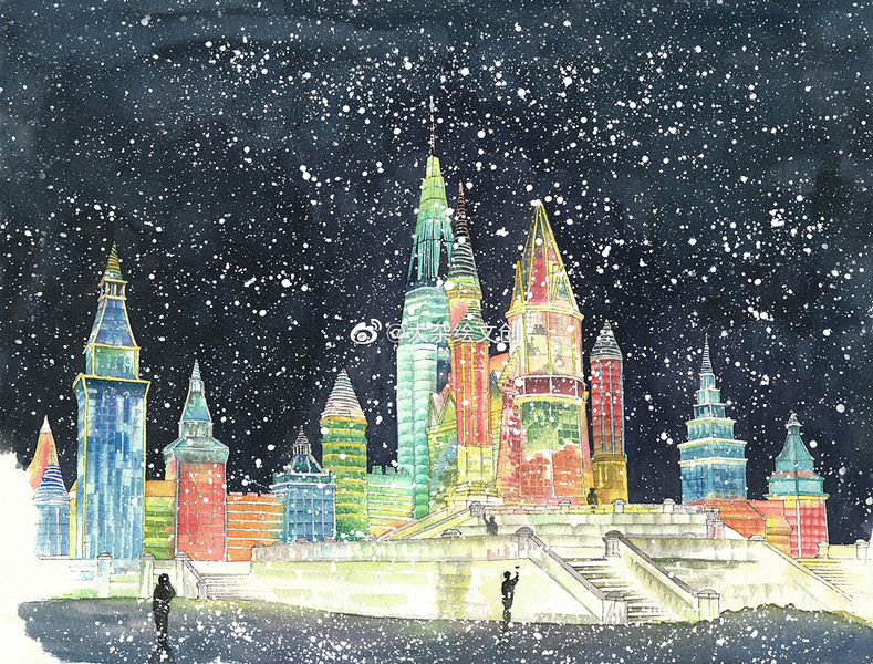 治愈插画-大雪中的哈尔滨
