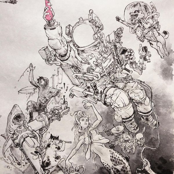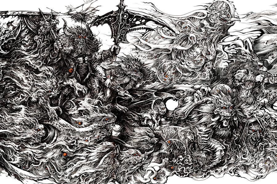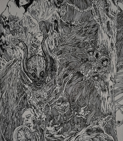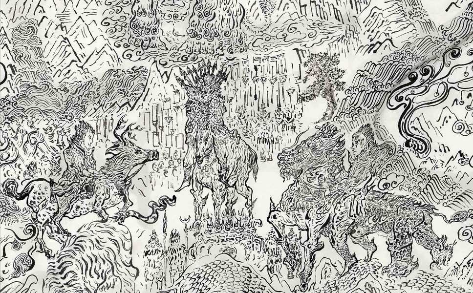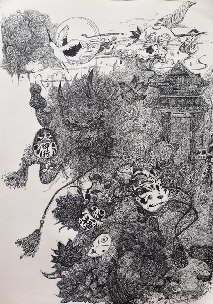 和风黑白插画