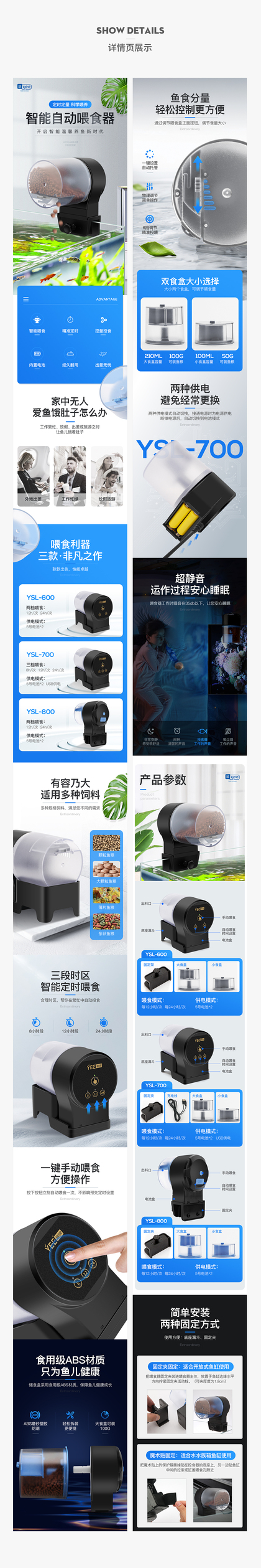 鱼缸自动投食器详情页渔具鱼竿水族水泵鱼粮