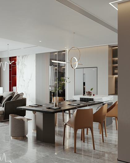 现代风格客餐厅—白龙马效果图