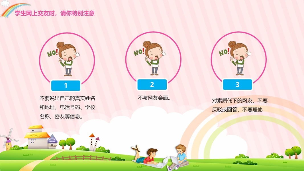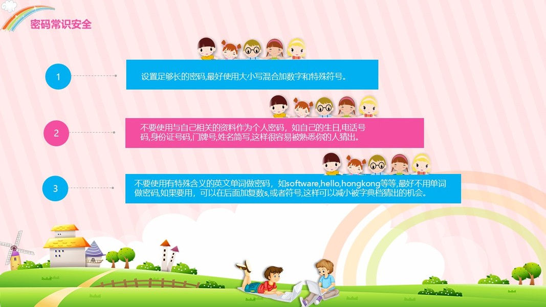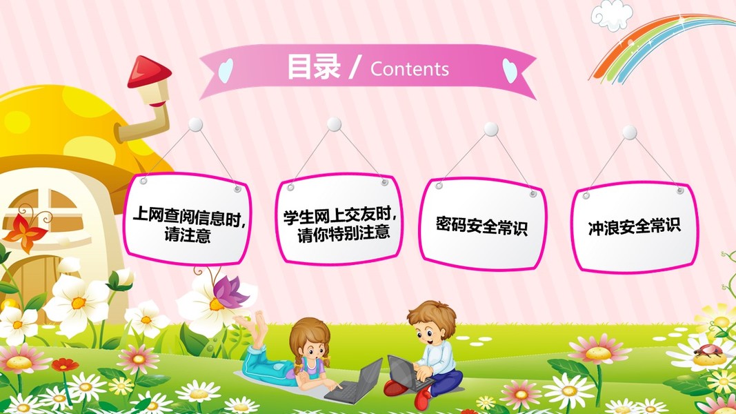 粉色可爱小学生网络安全知识教育培训PPT模板