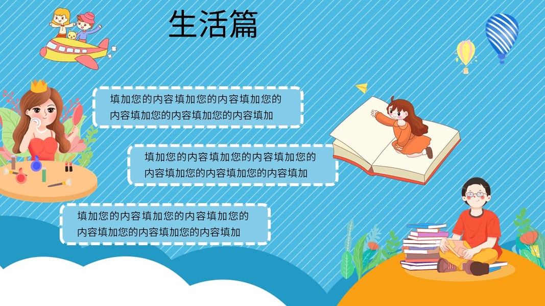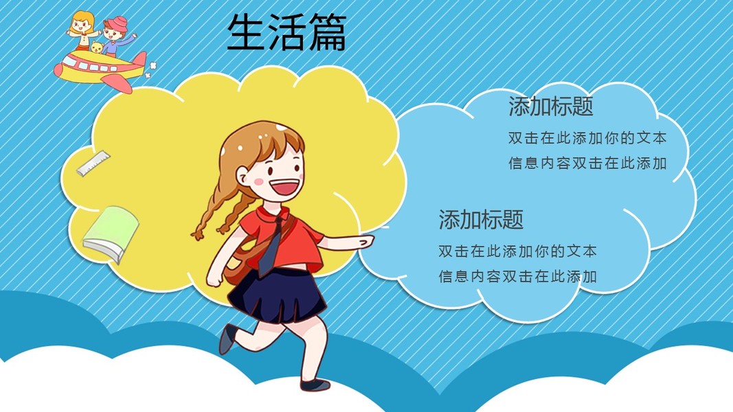 淡蓝色卡通我的暑假生活儿童成长档案PPT模板