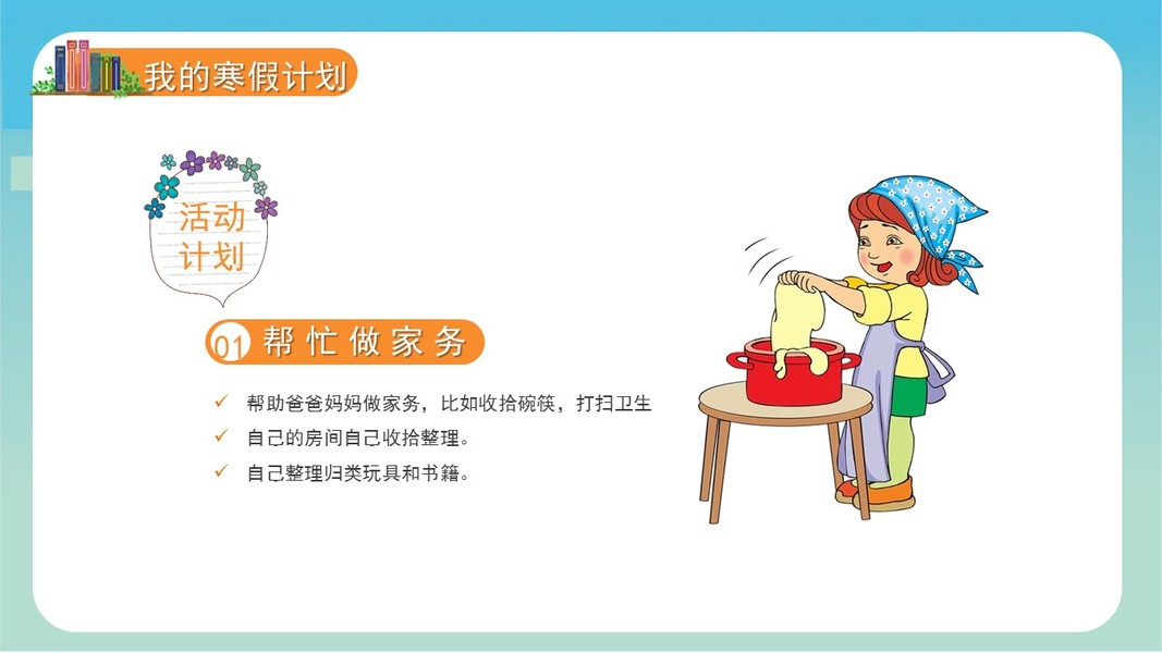 简约卡通风我的快乐寒假生活记录篇PPT模板