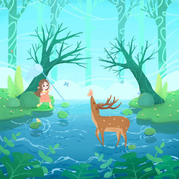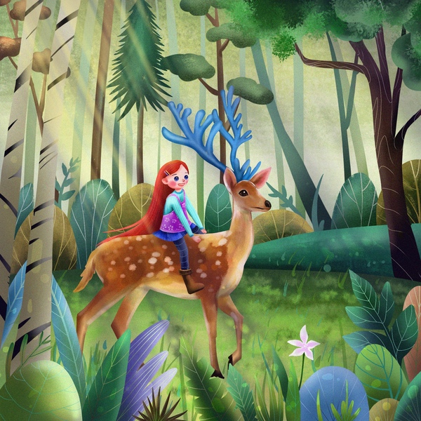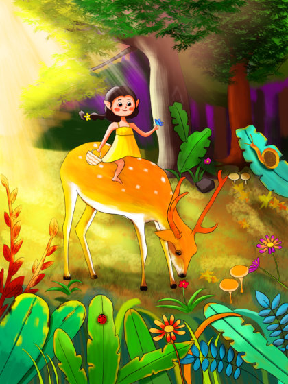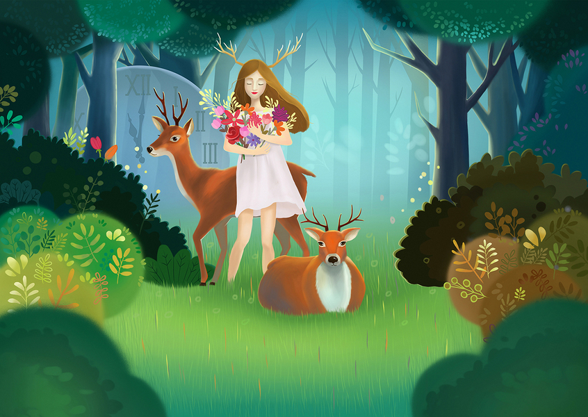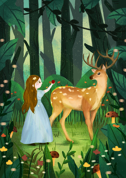 森林里的女孩与小鹿