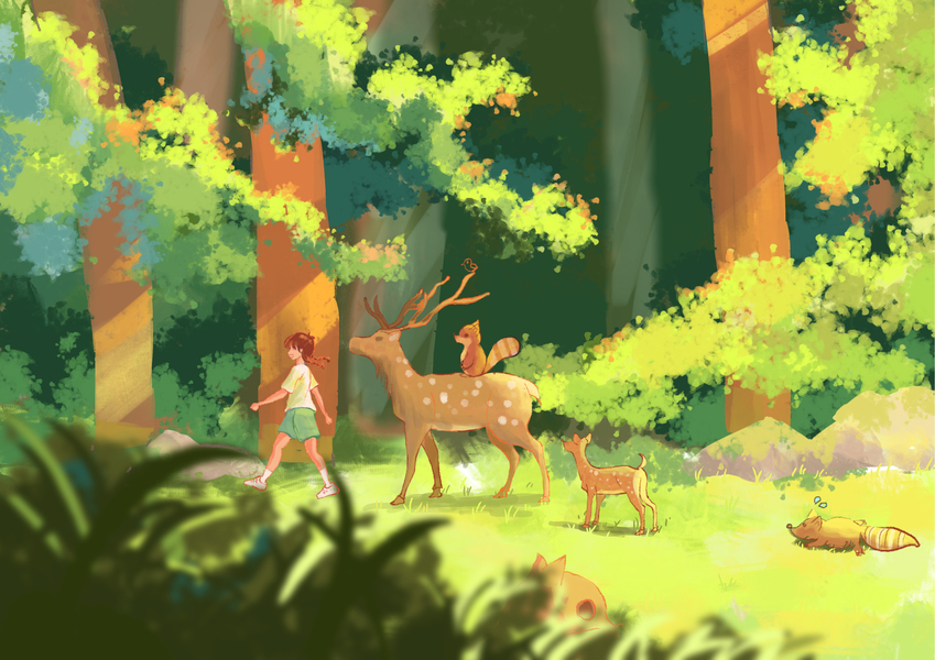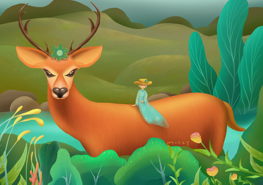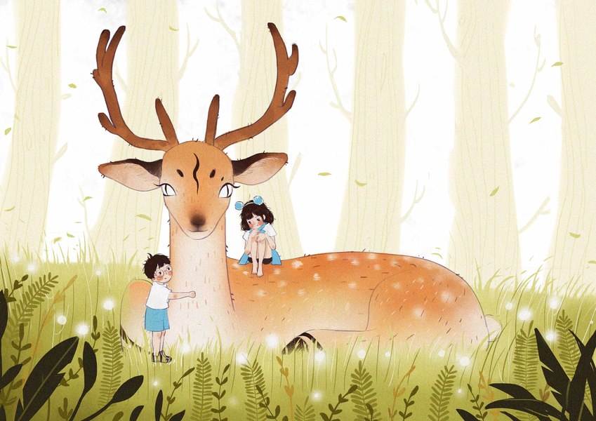 小女孩与鹿