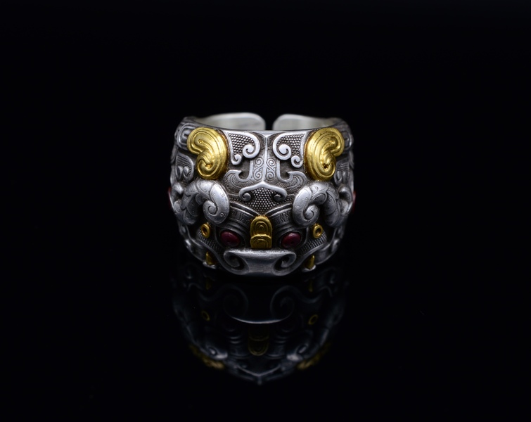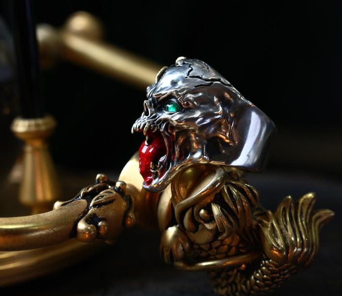 银匠显若手工雕蜡作品《兽人杜隆坦》纯银版戒指